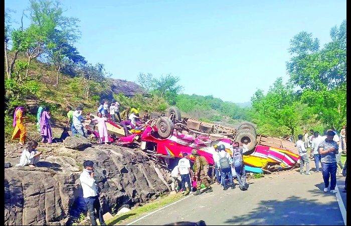 અકસ્માત સ્થળે હાજર લોકોએ જણાવ્યું હતું કે અકસ્માત ઓવરલોડિંગ અને પુરપાટ ઝડપને કારણે થયો હતો. ઘાયલ મુસાફરોની પૂછપરછ કરવામાં આવી હતી, જેમાં કહેવામાં આવ્યું હતું કે ડ્રાઇવર ખૂબ જ પુરપાટ ઝડપે બસ ચલાવી રહ્યો હતો. આ દરમિયાન ટાયર ફાટવાને કારણે બસ પરનો ક્ધટ્રોલ ગુમાવ્યો, જેના કારણે બસ લગભગ 100 ફૂટની ઊંચાઈથી નીચે ખાબકી હતી.