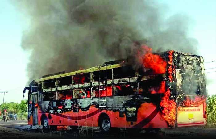 જેસલમેર બસમાં લાગેલી આગનો બીજો એક વીડિયો સામે આવ્યો છે. વીડિયોમાં પાછળ સળગતી બસ છે. આગમાં દાઝી ગયેલો એક યુવાન હાઇવે પર મદદ માંગતો બહાર આવે છે.