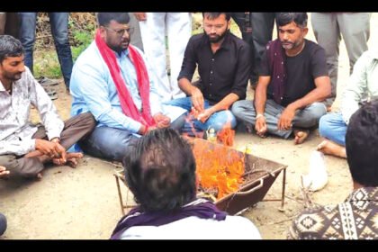 હળવદના સરા-સુંદરીભવાની રોડ પર તૂટેલાં રોડ અને ભ્રષ્ટ શાસન સામે યજ્ઞ કરીને વિરોધ