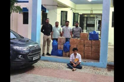 કચ્છ મોરબી હાઈવે પર ઈકોસ્પોર્ટ કારમાંથી વિદેશી દારૂની 347 બોટલો સાથે એક ઝડપાયો