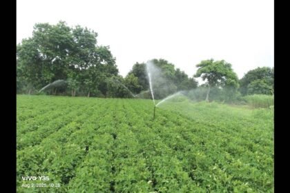 વરસાદની અછતને કારણે ખેડૂતો ફુવારા પદ્ધતિથી પિયત કરવા મજબૂર બન્યા