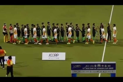 મલેશિયાના જોહર બાહરુંમાં આયોજિત સુલતાન જોહર કપમાં ભારતની અને પાકિસ્તાની હોકી ટીમે હાથ મિલાવ્યા
