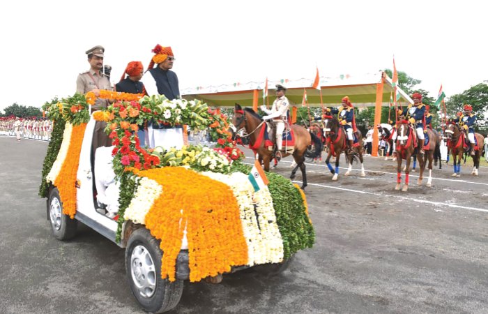 મંત્રી રાઘવજીભાઈ પટેલે સ્વાતંત્ર્ય પર્વે પ્રજાજોગ સંબોધન કરતા નાગરિકોને સ્વાતંત્ર્ય દિનની શુભકામનાઓ પાઠવી હતી. આ પ્રસંગે તેમણે દેશને આઝાદી અપાવવા બલિદાન આપનાર વીર સ્વાતંત્ર્ય સેનાનીઓનું પુણ્ય સ્મરણ કરી શ્રદ્ધાંજલિ પાઠવી હતી. મંત્રીએ જિલ્લા કલેકટરને જૂનાગઢ જિલ્લાના વિકાસ કાર્યો માટે રૂ.25 લાખનો ચેક અર્પણ કર્યો હતો. આન,બાન અને શાન સાથે થયેલી આ રાષ્ટ્રીય પર્વની ઉજવણીમાં વિદ્યાર્થીઓએ દેશભક્તિસભર અને રંગારંગ સાંસ્કૃતિક કાર્યક્રમો રજૂ કરીને સૌને મંત્રમુગ્ધ કર્યા હતા.આ પ્રસંગે મંત્રી રાઘવજીભાઈ પટેલના હસ્તે વિશિષ્ટ સિદ્ધિ હાંસલ કરનાર રમતવીરો અને સરકારી સેવામાં ઉત્કૃષ્ટ યોગદાન આપનાર કર્મયોગીઓનું સન્માન કરવામાં આવ્ય હતું.કાર્યક્રમના અંતે મંત્રી રાઘવજીભાઈ પટેલ સહિતના મહાનુભાવોએ પોલીસ તાલીમ મહાવિદ્યાલયના પરિસરમાં વૃક્ષારોપણ કર્યું હતું.