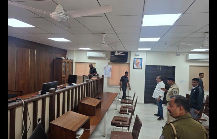 રાજકોટ જામનગર રોડ ઉપર આવેલ નવી કોર્ટ ખાતે સવારે એસઓજી, બોમ્બ સ્ક્વોડ અને ડોગ સ્ક્વોડ દ્વારા સમગ્ર કોર્ટ સંકુલમાં ચેકીંગ પ્રક્રિયા હાથ ધરવામાં આવી હતી દર મહિને સલામતીના ભાગરૂપે રૂટિન પ્રક્રિયા મુજબ આ કામગીરી હાથ ધરવામાં આવી હતી. રાજકોટ એસઓજી પીઆઇ એસ એમ જાડેજાના માર્ગદર્શન હેઠળ રાજકોટ જામનગર રોડ ઉપર આવેલી નવી કોર્ટ ખાતે સવારે ચેકીંગ પ્રક્રિયા હાથ ધરવામાં આવી હતી જેમાં એસઓજી સ્ટાફ સાથે બોમ્બ સ્ક્વોડ અને ડોગ સ્ક્વોડનો સ્ટાફ પણ જોડાયો હતો નવી કોર્ટ બિલ્ડીંગ ખાતે પાર્કિંગમાં પાર્ક કરાયેલા વાહનો તેમજ તમામ છ માળમાં વિવિધ કોર્ટ, કેન્ટીન, લોબી સહિતની જગ્યાઓ ઉપર ચેકીંગ પ્રક્રિયા હાથ ધરવામાં આવી હતી દર મહિને સલામતીના ભાગરૂપે આ પ્રમાણે ચેકીંગ કરવામાં આવતું હોય છે આ રૂટિન કામગીરી અંતર્ગત આજે પણ ચેકીંગ કરવામાં આવ્યું હતું.