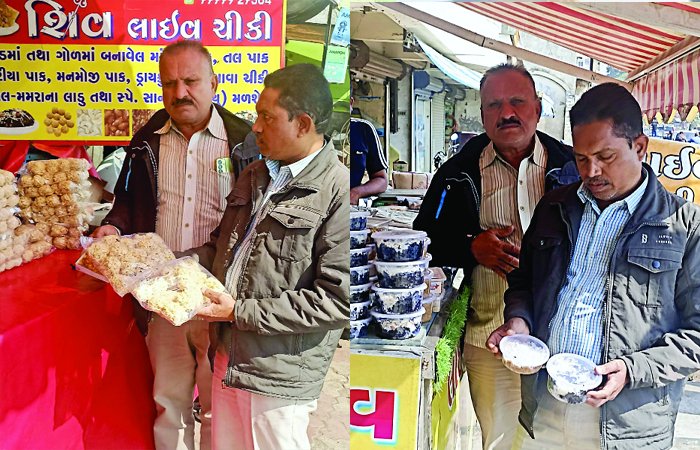 રાજકોટ મહાનગરપાલિકાના ફૂડ વિભાગ દ્વારા હાલમાં મકરસંક્રાંતિના તહેવારોને અનુલક્ષીને લોકો દ્વારા પુષ્કળ પ્રમાણમાં વપરાશમાં લેવામાં આવતી ચીકીના ઉત્પાદકો તથા વેપારીઓને ત્યાં સઘન ચકાસણી કરવામાં આવી હતી. જેમાં મોમાઈ ચીકી પારેવડી ચોક, શિવ ચીકી પારેવડી ચોક, જય બજરંગ લાઈવ ચીકી પારેવડી ચોક, જય સિયારામ ચીકી પારેવડી ચોક, જય જલારામ ચીકી પારેવડી ચોક, પાર્થ ચીકી પારેવડી ચોક, જય શંકર ચીકી ભગવતીપરા, ક્રિષ્ના સિઝન સ્ટોર સહકાર મેઈન રોડ, સંતોષ સિઝન સ્ટોર સહકાર મેઈન રોડ, સોનલ સિઝન સ્ટોર સહકાર મેઈન રોડની ચકાસણી કરવામાં આવી તેમજ ફૂડ સેફ્ટી સ્ટાન્ડર્ડ એક્ટ 2006 હેઠળ કુલ 5 નમૂના લેવામાં આવ્યા હતા.