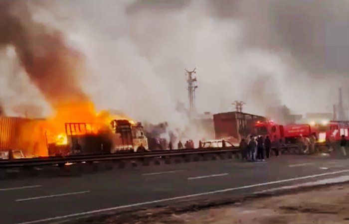 આ વિસ્ફોટ થતાં જ વાહનોથી ભરેલા વેરહાઉસમાં પણ આગ લાગી હતી. એક સાથે ડઝનબંધ વાહનો આગની લપેટમાં આવી ગયા હતા. સીએનજી ટેન્કર અને અન્ય એક ટ્રક વચ્ચે અકસ્માત સર્જાયો હતો. જે બાદ સીએનજી ટ્રકમાં એક પછી એક બ્લાસ્ટ થવા લાગ્યા હતા. ધડાધડ વિસ્ફોટથી નજીકના વાહનો પણ લપેટમાં આવી ગયા હતા.