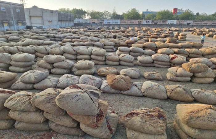 સૌરાષ્ટ્ર ગુજરાતનું નંબર વન ગણાતું ગોંડલ માર્કેટિંગ યાર્ડમાં રોજીંદા વિવિધ જણસીઓની આવક થતી હોય છે. ત્યારે આજરોજ માર્કેટિંગ યાર્ડમાં ગોંડલનું પ્રખ્યાત લાલ ચટાક મરચાની સિઝન ની સૌ પ્રથમ આવક નોંધાઈ હતી. માર્કેટિંગ યાર્ડમાં મરચાની અંદાજે 3500 થી 4000 ભારી ની આવક નોંધાઈ છે.