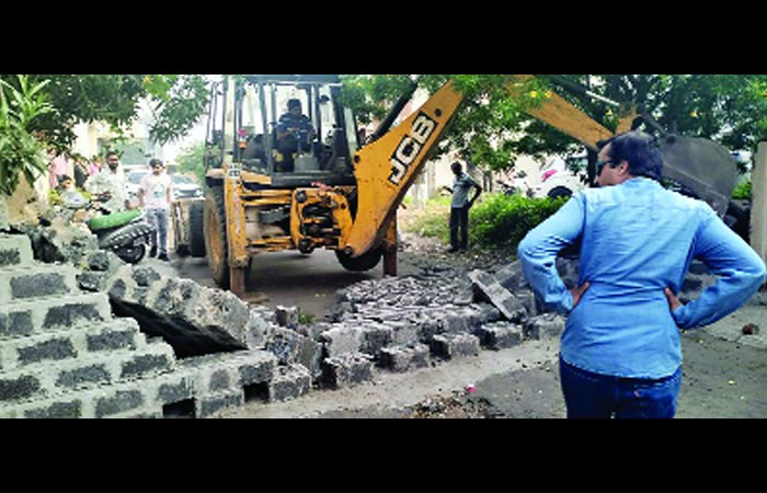 સૂર્યોદય સોસાયટીમાં ખડકાયેલું ગેરકાયદે બાંધકામ દૂર કરાયું