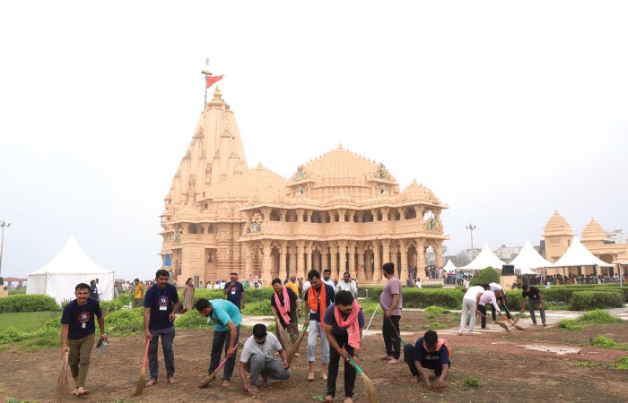 360 જેટલા સ્વયં સેવકો દ્વારા સોમનાથ મંદિર, અહલ્યાબાઇ મંદિર, ગોલોકધામ, ભાલકા તીર્થ, રામ મંદિર, ત્રિવેણી સંગમ, વિઠલેશ્વર મંદિર-પ્રાચી, શશીભુષણ મહાદેવ ભીડીયા ખાતે પોતાનું શ્રમદાન કરી સ્વચ્છતા કરવામાં આવી હતી. જેમાં શ્રી સોમનાથ ટ્રસ્ટના સફાઇ કર્મીઓ પણ જોડાયા હતા.