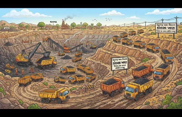 સુરેન્દ્રનગર જિલ્લામાં ઠેર ઠેર ચાલતા ખનીજના ખનન સામે તંત્રની ભૂમિકા શંકાસ્પદ નજરે પડે છે જેમાં સુરેન્દ્રનગર જિલ્લામાં સૌથી મોટા ખનનના કૌભાંડ એટલે કે કોલસાનું ખનન થતા ત્રણ તાલુકામાં તંત્રને ક્યારેય કોલસાનું ખનન બંધ કરાવવામાં સફળતા મળી નથી. તેવામાં કોલસાના ખનન માટે સૌથી મહત્વનો વિસ્તાર ગણાતા થાનગઢ પંથકના સોનગઢ ગામે ખારા વિસ્તારમાં અવિરત ચાલતી કોલસાની ઓપન કટીંગ ખાણ સામે ભલભલા બાહોશ અધિકારીઓના પગ ધ્રૂજવા લાગતા હોય છે. જેના લીધે થાનગઢ પંથકના દરેક વિસ્તારોમાં દરોડા થાય પરંતુ ખારા વિસ્તારમાં કોલસાના ખનન પર દરોડા કરવાનું બાહોસ અધિકારીઓ સ્વપ્ન પણ જોતા નથી કારણ કે અહીં કોલસાની ઓપન કટિંગ ખાણો રાજકીય ઓથ હેઠળ ચાલે છે. ત્યારે સુરેન્દ્રનગર જિલ્લામાં પોતાને બાહોશ માનતા અધિકારીઓ ખારા વિસ્તારમાં જતા પણ ડર અનુભવે છે જેથી સ્પષ્ટ અધિકારીઓની સામે પણ અનેક પ્રકારની શંકા ઉદ્ભવે છે. સ્થાનિક જાગૃત નાગરિક દ્વારા થાનગઢ તાલુકાના સોનગઢ ગામે ચાલતી બેરોકટોક અને ખુલ્લેઆમ કોલસાની ઓપન કટીંગ ખાણો મામલે અઈં જનરેટથી નિર્માણ કરેલ ચિત્ર સોશિયલ મીડિયા પર વાયરલ થતા સોનગઢના ખારા વિસ્તારમાં ચાલતા કોલસાના ખનન અંગે અનેક તર્ક વિતર્ક સર્જાયા છે.