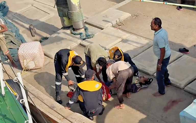 અમરેલી જિલ્લાના જાફરાબાદના દરિયામાં એક ખલાસી ઈજાગ્રસ્ત થયાની ધટના બની હતી. મળતી માહિતી મુજબ જાફરાબાદ નજીક અરબી સમુદ્રમાં 60 નોટીકલ માઇલ દૂર દરિયામાં મહેશ્ર્વરી નામની બોટમાં એક ખલાસી ગંભીર ઇજાગ્રસ્ત થયો હતો. ઈજાગ્રસ્ત ખલાસી ની જાણ કોસ્ટગાર્ડ ટીમને થતાં તાત્કાલિક રેસકયુ કરવા માટે દરિયામાં રવાના થઈ હતી. કોસ્ટગાર્ડ ટીમે 60 નોટીકલ માઇલ દૂર દરિયામાં ઈજાગ્રસ્ત ખલાસી ભીખુભાઈ નું સફળતાપૂર્વક રેસકયું કરી જીવ બચાવ્યો હતો. દરિયા કિનારે પહોંચ્યા બાદ પ્રથમ સારવાર કોસ્ટગાર્ડ ટીમે આપ્યા બાદમાં સારવાર માટે હોસ્પિટલ ખસેડવામાં આવ્યા હતા.