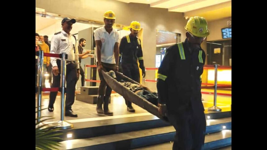 ફાયર બ્રિગેડની ટીમે તાત્કાલિક પહોંચીને લોકોને સુરક્ષિત બહાર કાઢ્યા; બે ‘કેઝ્યુઅલ્ટી’ને હોસ્પિટલ ખસેડાયાનું નિદર્શન કરાયું