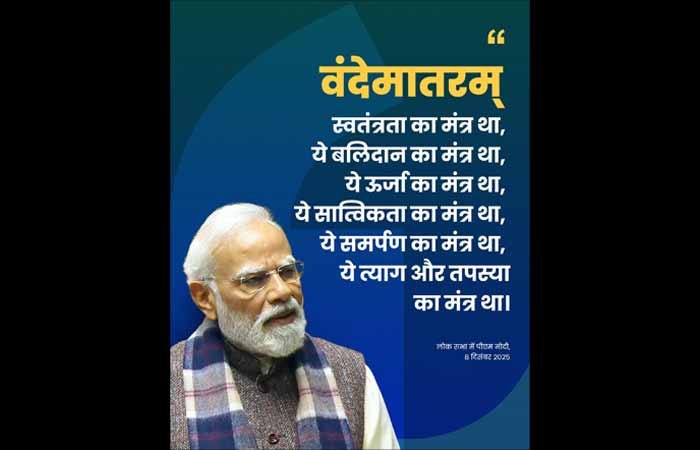 પીએમએ કહ્યું કે કોંગ્રેસે વંદે માતરમ્ના ટુકડા કરી દીધા. આ તુષ્ટિકરણની રાજનીતિને અનુસરવાની તેમની રીત હતી. તુષ્ટિકરણની રાજનીતિના દબાણ હેઠળ, કોંગ્રેસે વંદે માતરમ્ના વિભાજનને સ્વીકાર્યું. તેથી, એક દિવસ કોંગ્રેસને ભારતના ભાગલા સામે ઝૂકવું પડ્યું. કોંગ્રેસે આઉટસોર્સિંગ કર્યું છે, અને કમનસીબે, તેની નીતિઓ એ જ રહી છે. ઈંગઈ ધીમે ધીમે ખગઈ બની ગઈ છે. જેમની સાથે કોંગ્રેસ જોડાયેલી છે તેઓ વંદે માતરમ્ પર ગરમાગરમ ચર્ચાઓ કરી રહ્યા છે. 1947માં આઝાદી પછી, દેશના પડકારો અને પ્રાથમિકતાઓ બદલાઈ ગઈ, પરંતુ જ્યારે પણ કટોકટીનો સામનો કરવો પડ્યો, ત્યારે દેશ “વંદે ભારત” (વંદે ભારત) ની ભાવના સાથે આગળ વધ્યો. આજે પણ, 15 ઓગસ્ટ અને 26 જાન્યુઆરીએ, તે ભાવના દરેક જગ્યાએ દેખાય છે. મોહમ્મદ અલી ઝીણાએ 15 ઓક્ટોબર, 1936ના રોજ લખનઉથી વંદે માતરમ્ વિરુદ્ધ નારા લગાવ્યા હતા. તત્કાલીન કોંગ્રેસ પ્રમુખ જવાહરલાલ નેહરુએ તેમનું સિંહાસન ડોલતું જોયું. મુસ્લિમ લીગના પાયાવિહોણા નિવેદનોનો સખત જવાબ આપવા અને તેમની નિંદા કરવાને બદલે, નેહરુએ વિપરીત કર્યું: તેમણે વંદે માતરમ્ની જ તપાસ શરૂ કરી. પાંચ દિવસ પછી નેહરુએ નેતાજીને પત્ર લખ્યો. તેમણે ઝીણા સાથે સંમતિ દર્શાવતા લખ્યું કે વંદે માતરમ્ની આનંદમઠ પૃષ્ઠભૂમિ મુસ્લિમોને નારાજ કરી શકે છે. તેમણે લખ્યું, ‘આ પૃષ્ઠભૂમિ મુસ્લિમોને ઉશ્ર્કેરશે.’ કોંગ્રેસ પાર્ટીએ જાહેરાત કરી કે કોંગ્રેસ કાર્યકારી સમિતિ 26 ઓક્ટોબરે વંદે માતરમ્ના ઉપયોગની સમીક્ષા કરવા માટે મળશે. આ પ્રસ્તાવનો વિરોધ કરવા માટે દેશભરમાં લોકોએ પ્રભાત ફેરીઓ કાઢી. પરંતુ કોંગ્રેસે વંદે માતરમ્ના ટુકડા કરી નાખ્યા. ઇતિહાસ સાક્ષી છે કે કોંગ્રેસ મુસ્લિમ લીગ સામે ઘુંટણીયે પડી હતી.