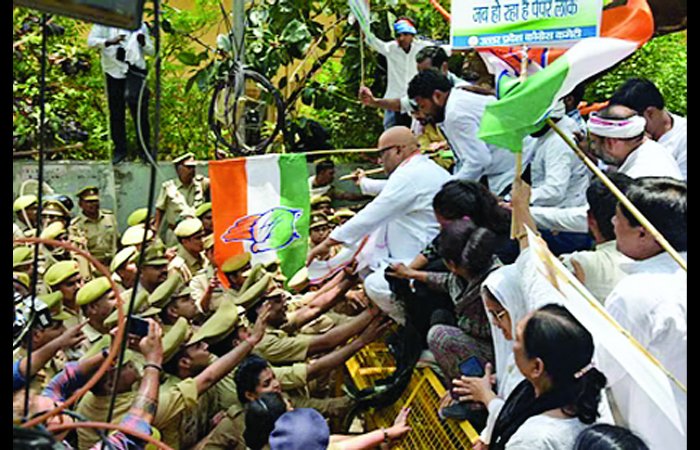 ગઊઊઝ પેપર લીક અને ગેરરીતિ મામલે કોંગ્રેસે દેશમાં વસતીની દૃષ્ટિએ સૌથી મોટા રાજ્ય ઉત્તરપ્રદેશમાં લખનઉ ખાતે મોટાપાયે દેખાવો કર્યા હતા. આ દેખાવોમાં પાર્ટીના રાજ્ય એકમના અધ્યક્ષ અજય રાય પણ જોડાયા હતા. અજય રાય એ જ વ્યક્તિ છે જેમણે લોકસભા ચૂંટણી વડાપ્રધાન મોદીની સામે લડી હતી અને તેમને જંગી લીડ મેળવતા રોક્યા અને જીત મેળવતા હંફાવ્યા હતા. પોલીસે સજ્જડ દેખાવોનું નેતૃત્વ કરવા બદલ તેમની અટકાયત કરી હતી.