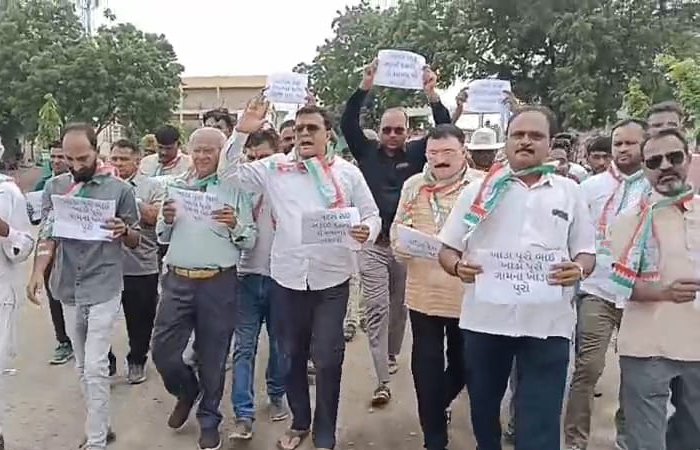 હાથમાં બેનર લઈને આવેલા કાર્યકર્તાઓએ નગરપાલિકા કચેરી સામે “સાવરકુંડલા નગરપાલિકાના ટેક્સ માફ કરો” અને “ખાડા પૂરો” જેવા સૂત્રોચ્ચાર કરીને હલ્લાબોલ કર્યો હતો.