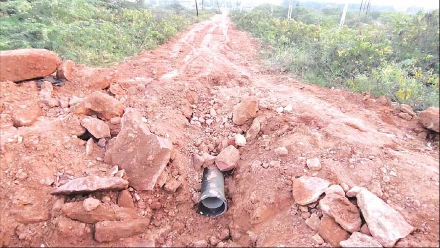 જમીનથી અડધો ફૂટ ઊંચાઈએ પાઇપ લાઇન નાખવામાં આવતી હોવાનો આક્ષેપ