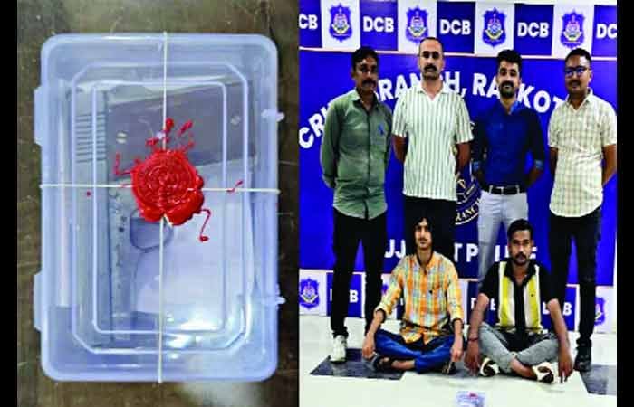 આ બાતમી આધારે સ્ટાફે વોચ ગોઠવી બાતમીવાળી કાર પસાર થતા અટકાવી તેમાં બેઠેલા બે શખ્સોના નામઠામ પૂછતાં પોતે મૂળ જૂનાગઢના હાલ રાજકોટ સ્વામિનારાયણ ચોકમાં સીટી હાઈટ્સ એપાર્ટમેન્ટમાં રહેતા અયાન અમીન મુળીયા ઉ.21 અને ગોંડલ રોડ એસટી વર્કશોપ પછી વીર નર્મદ ટાઉનશીપમાં રહેતા દિનેશ ઉર્ફે કાંચો સંજય ટમટા ઉ.26 હોવાનું જણાવતા બંનેને સકંજામાં લઇ જડતી લેતા દેશી પીસ્ટલ મળી આવતા હથિયાર, સ્કોર્પિયો કાર અને મોબાઈલ સહીત કુલ 12.30 લાખનો મુદ્દામાલ કબ્જે કર્યો હતો. પોલીસની પ્રાથમિક તપાસમાં મૂળ જૂનાગઢનો અયાન મૂળિયા તેના મિત્ર દિનેશ ઉર્ફે કાંચો સાથે મળી પાટણના સમીથી હથિયાર લઈ આવ્યો હતો અયાન જૂનાગઢમાં રાયોટીંગ સહિતના ત્રણેક ગુનામાં પકડાઈ ચુક્યો હોય ત્યાં દુશ્મનાવટ ચાલતી હોવાથી આ હથિયાર સ્વબચાવ માટે સાથે રાખતો હોવાનું જાણવા મળ્યું છે કાંચો પણ રાજકોટમાં મારામારી, રાયોટીંગ સહિતના બે ગુનામાં પોલીસ ચોપડે ચડી ચુક્યો છે.