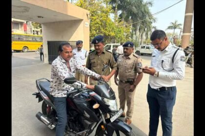 રાજકોટ છખઈ ઓફિસ ખાતે ટ્રાફિક પોલીસની હેલ્મેટ ડ્રાઈવ