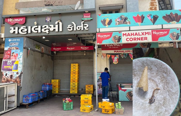 મણિનગરના એક ગ્રાહકે આરોપ લગાવ્યો હતો કે તેણીને આ સ્ટોરમાંથી ખરીદેલા હેવમોર આઈસ્ક્રીમ કોનમાં મૃત ગરોળી મળી આવી હતી, જેના કારણે અમદાવાદ મ્યુનિસિપલ કોર્પોરેશન (અખઈ) એ આજે શહેરના મણિનગર વિસ્તારમાં મહાલક્ષ્મી કોર્નરને સીલ કરી દીધું.