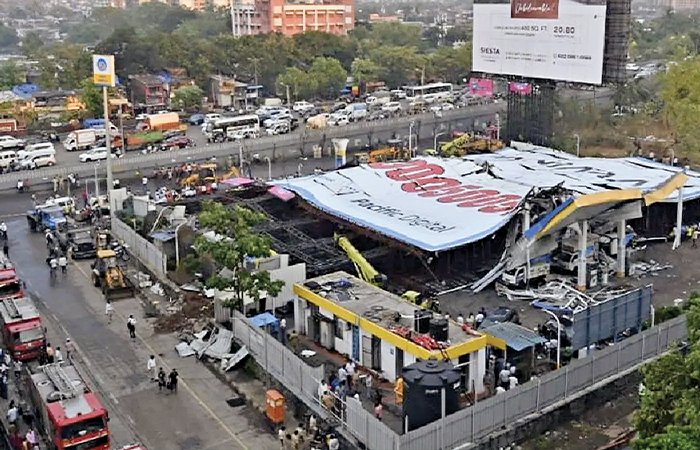 શરૂઆતનાં અંદાજના આધારે, આ બિલબોર્ડનું વજન 250 ટન હોવાનું કહેવાય છે. પંત નગર પોલીસ સ્ટેશનમાં હોર્ડિંગ માલિક ભાવેશ ભીંડે અને અન્યો વિરુદ્ધ ઈંઙઈની કલમ 304, 338, 337 હેઠળ કેસ નોંધીને તેની તપાસ કરવામાં આવી રહી છે. મુંબઈમાં સોમવારે બપોરે અચાનક વાતાવરણમાં પલટો આવ્યો હતો. ધૂળની ડમરીઓ બાદ વરસાદ પણ શરૂ થયો હતો. અંધારું થઈ ગયું. જેના કારણે લોકોને ભારે મુશ્કેલીનો સામનો કરવો પડ્યો હતો.
