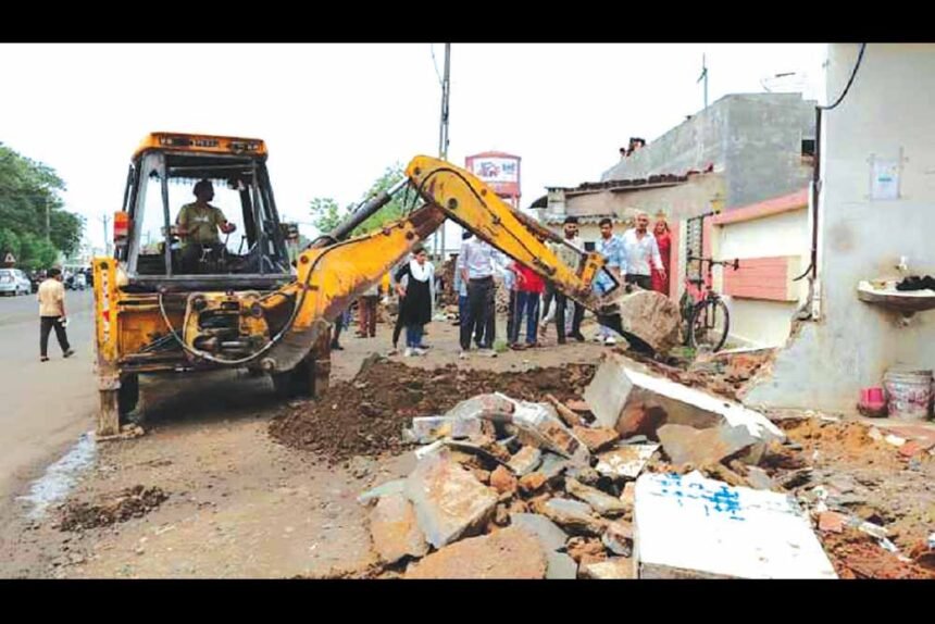 મોરબી મહાનગરપાલિકા દ્વારા વન વિક વન રોડ ઝુંબેશ અંતર્ગત દબાણ હટાવો કામગીરી કરવામાં આવી રહી છે જેમાં ચોમાસાને પગલે ઝુંબેશને આંશિક બ્રેક જોવા મળી હતી અને હવે ચોમાસું અને દિવાળી પૂર્ણ થતા ફરી ટીમ એક્શનમાં આવી છે અને રાજપર ચોકડી પાસે દબાણ હટાવવામાં આવ્યા હતા મોરબી મહાપાલિકા દ્વારા વન વિક વન રોડ અંતર્ગત રાજપર ચોકડી પાસે ઓટલા અને છાપરા સહિતના દબાણો હટાવવામાં આવ્યા હતા ચોમાસા પૂર્વે લાઈન ઓફ પબ્લિક સ્ટ્રીટ કાર્યવાહી કરવામાં આવી હતી રોડ માર્ગ અને મકાન વિભાગ હસ્તક હતો અને જાહેરનામું પ્રસિદ્ધ કરવામાં આવ્યું હતું વાંધા પણ મંગાવવામાં આવ્યા હતા રોડની પહોળાઈ વધારીને 24 મીટર કરવામાં આવી રહી છે જેથી દબાણો હટાવવામાં આવી રહ્યા છે