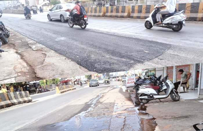 રાત્રે ડામર રોડ બનાવ્યો અને સવારે ફરી પાણી નીકળવાનું શરૂ થયું