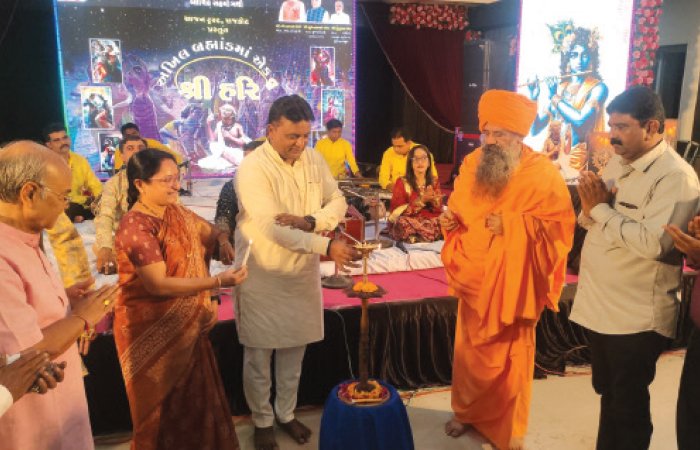 કાર્યક્રમનાં ઉદઘાટક ભક્તકવિ નરસિંહ મહેતા યુનિ.નાં કુલપતિ પ્રો. (ડો) ચેતન ત્રિવેદીએ પ્રાસંગિક ઉદબોધનમાં ઉપસ્થિત સહિત્યરસીક શ્રોતાઓને સંબોધતા જણાવ્યુ હતુ કે જે શહેરની અંદર સંસ્કૃતિ, કલા, સાહિત્ય, સંગીતને પ્રાધાન્ય આપવામાં આવે તે શહેરમા વાદવિવાદ ઓછા થાય છે, ત્યાં લોકોના સમજણ અને બુદ્ધિ વધતી હોય છે, હકારાત્મક અને સકારાત્મક વિચારોનું સિંચન થતું હોય છે, ભક્ત કવિ નરસિંહ મહેતા યુનિવર્સિટી દ્વારા નિયમિતપણે આ પ્રકારના કાર્યક્રમો યોજવામાં આવતા હોય છે. અમારી નેમ છે કે આવનારા દિવસોમાં કલાક્ષેત્રે કામ કરતા કલામર્મીઓને ભક્ત કવિ નરસિંહ મહેતા જીવનકવન એમ્બેસેડર તરીકે ઓળખવાની વાત કરવામાં આવશે, નિરંજનભાઈ રાજ્યગુરુને ભજનની દુનિયામાં ખેડેલ પ્રદાનને યાદ કરીને ડો. ચેતન ત્રિવેદી એ જણાવ્યું હતું કે ભક્ત કવિ નરસિંહ મહેતા યુનિવર્સિટી યુ.જી.સી.ના નવા નિયમોને ધ્યાને રાખીને નિરંજનભાઇ રાજ્યગુરુને પ્રોફેસર ઓફ પ્રેક્ટિસ બનાવવાની નેમ છે, ભક્ત કવિ નરસિંહ મહેતાએ આજથી 600 વર્ષ પહેલાં સામાજિક સમરસતાની જ્યોત જલાવી હતી, જે આજે પણ ભવનાથ તળેટીએ જતા જાણે નરસિંહ મહેતાની કરતાલ પ્રતીતિ કરાવી જતી હોય એવું ભાસે છે. ભક્ત કવિ નરસિંહ મહેતા યુનિવર્સિટીના કાર્યક્ષેત્રિય વિસ્તારમાં અભ્યાસોત્સુક વિદ્યાર્થીઓની નરસિંહ મહેતા યુનિવર્સિટી પરત્વે રસની વાત કરતા ડો.ત્રિવેદીએ જણાવ્યું હતું કે તાજેતરમાં ધોરણ 12 ની લેવાયેલી પરીક્ષામાં શ્રેષ્ઠતમ ગુણ હાંસલ કરનાર એક વિદ્યાર્થીએ જીકાસ પોર્ટલ પર નરસિંહ મહેતા યુનિવર્સિટીમા અભ્યાસ કરવાની ઉત્સુકતા દાખવી છે,આ વાતની પ્રતીતિ એ કરાવી જાય છે કે નરસિંહ મહેતા યુનિવર્સિટી ગુજરાતની શ્રેષ્ઠ યુનિવર્સિટી પૈકીની એક યુનિવર્સિટી હોવાનું વિદ્યાર્થીઓના માનસ પર પ્રતિબિંબિત થયું છે.આતકે ધારાસભ્ય સંજય કોરડીયા સહીત કલાવૃંદના કલાકારો દ્વારા શ્રોતાઓને રસ તરબોળ કર્યા હતા.