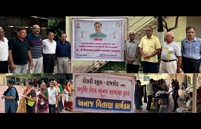 પ્રવૃત્તિ પ્રેરક માનવ કલ્યાણ ટ્રસ્ટ (બેંક ઓફ ઇન્ડિયા રિટાયર્ડ એમ્પ્લોઇઝ એસોસીએશન -રાજકોટની સેવાકીય પાંખ) તથા રોઝરી સ્કૂલ પરિવારના સંયુક્ત ઉપક્રમે 200 ઉપરાંત જરૂરતમંદ પરિવારોને અનાજ તથા અન્ય ઉપયોગી સામગ્રીનું વિતરણ કરવામાં આવ્યું હતું.