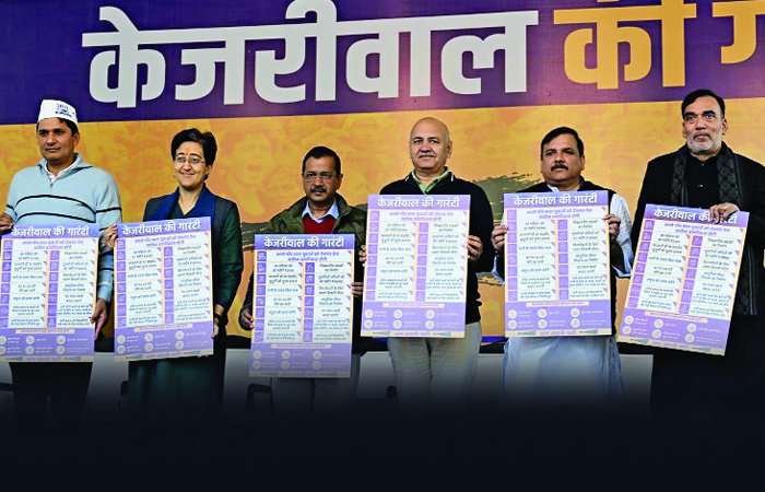 આમ આદમી પાર્ટી (AAP)એ સોમવારે દિલ્હી માટે પોતાનો ચૂંટણી મેનિફેસ્ટો જાહેર કર્યો. પાર્ટીના સંયોજક અરવિંદ કેજરીવાલે દિલ્હી માટે 15 પાર્ટી ગેરંટીની જાહેરાત કરી છે. જેમાં રોજગાર, મહિલા સન્માન, વૃદ્ધોને મફત સારવાર અને મફત પાણીની ગેરંટી જાહેર કરવામાં આવી હતી. તેમણે કહ્યું કે જો દિલ્હીમાં સરકાર બનશે તો લાખો લોકોના પાણીના બિલ માફ કરવામાં આવશે. અરવિંદ કેજરીવાલે કહ્યું કે ભાજપનો મેનિફેસ્ટો સાવ નકલી છે. કેજરીવાલે કહ્યું કે અમે વર્ષ 2020માં કરેલાં ત્રણ વચનો પૂરાં કરી શક્યાં નથી. જે હવે પૂર્ણ કરીશું. જેમાં યમુનાની સફાઈ, યુરોપની જેમ રસ્તાઓ બનાવવા અને 24 કલાક પાણી માટે કામ કરવાનો સમાવેશ થાય છે. કેજરીવાલે કહ્યું કે આજે હું કબૂલ કરું છું કે છેલ્લાં 5 વર્ષમાં હું આ વચનો પૂરાં કરી શક્યો નથી. કોરોના અઢી વર્ષ સુધી ચાલ્યો ત્યારબાદ જેલ-જેલ રમત રમી. મારી આખી ટીમ વિખેરાઈ ગઈ. તેમણે કહ્યું કે હવે અમે બધા જેલની બહાર છીએ. હું આ ત્રણેય વસ્તુઓ દિલ્હીમાં જોવા માગું છું એ મારું સપનું છે. અમે ત્રણેય કાર્યો આગામી 5 વર્ષમાં પૂર્ણ કરીશું. અમારી પાસે આ માટે ફંડ અને યોજના પણ છે.