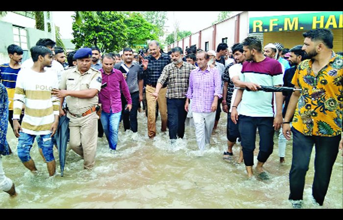 ઘૂંટણસમા પાણીમાં ઉતરીને સ્થળની સ્થિતિ અંગે સમીક્ષા કરતા કલેક્ટર