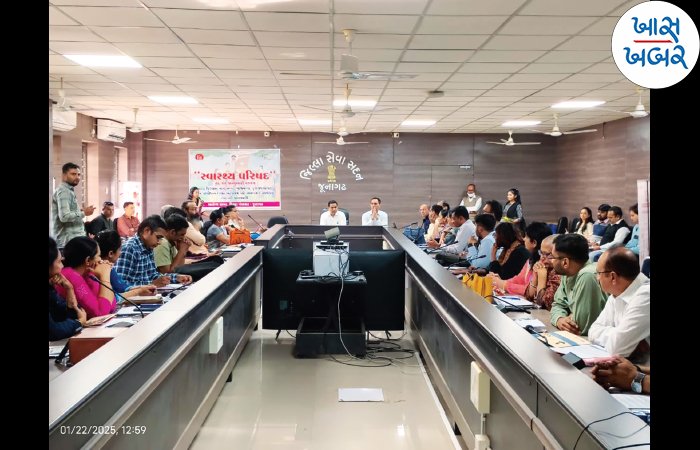 જૂનાગઢ જીલ્લા પંચાયત આરોગ્ય શાખા દ્વારા જીલ્લા સ્વાસ્થ્ય પરિષદ બેઠકનું આયોજન કલેકટર કચેરી ખાતે કરવામાં આવ્યુ હતું.આ સ્વાસ્થ્ય પરિષદનો મુખ્ય ધ્યેય આરોગ્ય વિષયક મુદાઓ માટે સ્થાનિક પરિબળને બહુઆયામી દ્રષ્ટીકોણથી સમજી પરિચર્ચા કરી તેના નિરાકરણ અર્થે નીતિનું ઘડતર કરવાનો છે આ પરિષદ જીલ્લા ક્લેકટર અનિલકુમાર રાણાવલિયાના અધય્ક્ષ સ્થાને કરવામાં આવી. સમગ્ર કાર્યક્રમમાં તમામ વિભાગ અનેએનજીઓ દ્વારા ઉત્સાહ અને સકારાત્મક રીતે ભાગ લેવામાં આવેલ અને આરોગ્ય વિષયક મુદાઓ પર માર્ગદર્શન, ઉપાય અને ભવિષ્યના આયોજનની ચર્ચા કરવામાં આવી. ખાસ કરીને માતા મરણ અને બાળ લગ્નનાં અટકાયતી પગલા, સંચારી રોગના સઘન અટકાયતી પગલા, બિનસંચારી રોગો અંગે જાગૃતતા અને તેના નિદાન સગર્ભા અને કિશોરીઓ માં એનેમીયા નું પ્રમાણ ઘટાડવા અંગે તમામના માર્ગદર્શન અને સુચનાંનું સકારાત્મક આદાન પ્રદાન કરવામાં આવ્યુ હતું.
