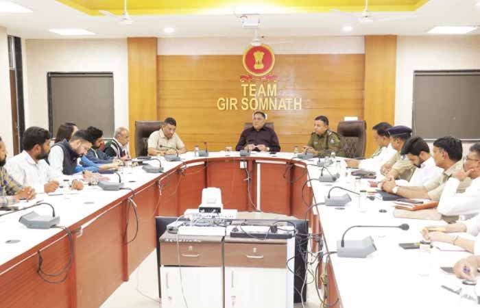 ગીર સોમનાથમાં 26મી જાન્યુઆરીની જિલ્લા કક્ષાની ઉજવણી તાલાલા ખાતે થશે. જેના સુચારૂ અને વ્યવસ્થિત આયોજન અંગે જિલ્લા કલેક્ટર એન.વી.ઉપાધ્યાયના અધ્યક્ષસ્થાને કલેક્ટર કચેરી, ઈણાજ ખાતે બેઠક યોજાઈ હતી. આ બેઠકમાં કલેક્ટરએ સંબંધિત વિભાગના શીર્ષ અધિકારીઓને જિલ્લા કક્ષાની ઉજવણી સંદર્ભે વિવિધ મુદ્દાઓ પર માર્ગદર્શન આપવામાં આવ્યું હતું.તાલાલા ખાતે વિવિધ વિભાગના ટેબ્લો તેમજ સાંસ્કૃતિક કાર્યક્રમો સાથે 26મી જાન્યુઆરીની ભવ્ય ઉજવણી કરવામાં આવશે. કલેક્ટરએ વીજ પુરવઠો, વાહન પાર્કિંગ તેમજ ટ્રાફિક નિયમન, સાંસ્કૃતિક કાર્યક્રમ, ફાયર ફાઈટર વગેરે જેવી સુવિધાઓને અનુલક્ષી સંબંધિત વિભાગના અધિકારીઓ પાસેથી વિગતો મેળવી હતી. કલેક્ટરએ સુચારૂ રીતે આ કાર્યક્રમ યોજાય તે અંગે કાર્યક્રમના આયોજન બાબતે સંબંધિત વિભાગોને મહત્વના મુદ્દે માર્ગદર્શિત કર્યા હતાં.