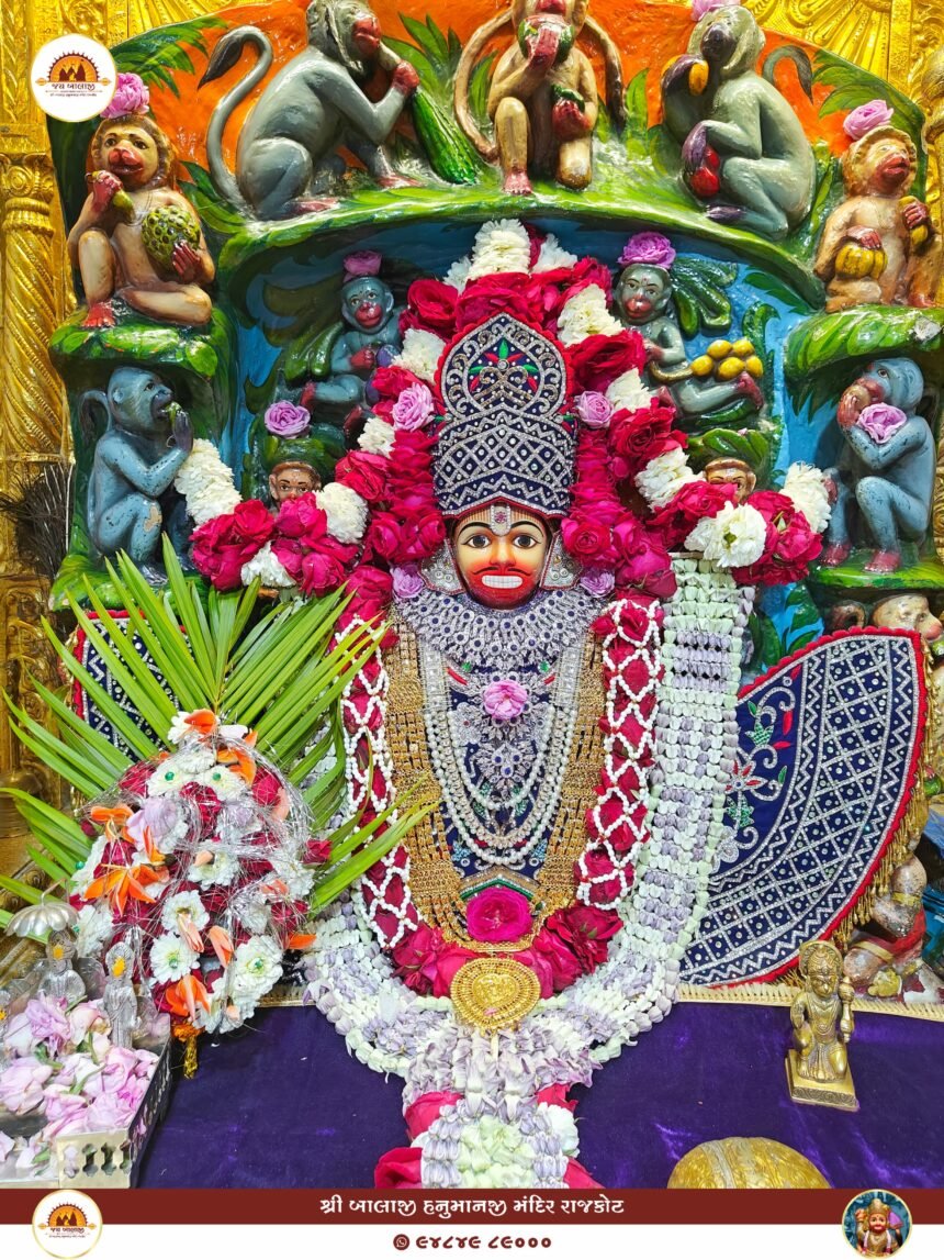 મહાપ્રતાપી બાલાજી દાદા સત્ય છે રાજકોટ વાસીઓની શ્રદ્ધા અને આસ્થાનું કેન્દ્ર એટલે બાલાજી હનુમાનજી મંદિર અહીં બિરાજમાન મહાપ્રતાપી બાલાજી હનુમાનજી મહારાજ ભક્તોના દુ:ખને દૂર કરે છે , વડતાલ ધામ સંચાલિત શ્રી બાલાજી હનુમાનજી મંદિરે આજના શનિવારના પવિત્ર દિવસે મહાપ્રતાપી બાલાજી હનુમાનજી મહારાજને રંગબેરંગી પુષ્પોના દિવ્ય શણગાર કરવામાં આવ્યા છે , જે શણગાર આકર્ષણનું કેન્દ્ર બન્યા છે ,રાજકોટ નું સૌથી વધારે ભીડ વાળુ આ મંદિર છે અહીં મહાપ્રતાપી બાલાજી દાદા સાક્ષાત બિરાજમાન છે અને રાજકોટ વાસીઓના દુ:ખોને દૂર કરી રહ્યા છે દર શનિવારે અહીં વિવિધ શણગારો દાદાને કરવામાં આવે છે અને સંગીતમય મારુતિ યજ્ઞનું પણ આયોજન કરવામાં આવે છે , સંધ્યા આરતીનું અહીં વિશેષ મહત્વ રહેલું છે , રાજપોચાર પદ્ધતિથી અહી દાદાની સંધ્યા આરતી થાય છે જેમાં હજારો ભક્તો જોડાય છે આપ પણ આજના શનિવારના પવિત્ર દિવસે સાંજે 6.45 એ થતી દાદાની સંધ્યા આરતીનો અલભ્ય લાભ લો તેમ બાલાજી હનુમાનજી મંદિર રાજકોટની યાદીમાં જણાવાયું છે