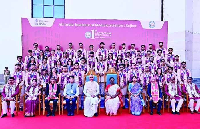 સૌરાષ્ટ્રના આરોગ્ય ક્ષેત્રે એક નવો ઇતિહાસ રચાયો છે. રાજકોટ ખાતે નવનિર્મિત ઓલ ઇન્ડિયા ઇન્સ્ટિટ્યૂટ ઓફ મેડિકલ સાયન્સીસનો પ્રથમ પદવીદાન સમારોહ ભારતના રાષ્ટ્રપતિ દ્રૌપદી મુર્મુની અધ્યક્ષતામાં સંપન્ન થયો હતો. આ પ્રસંગે એમ.બી.બી.એસ.ની પ્રથમ બેચના 50 વિદ્યાર્થીઓને પદવી એનાયત કરવામાં આવી હતી. પદવી મેળવનાર નવયુવાન ડૉક્ટરોને સંબોધતા રાષ્ટ્રપતિએ જણાવ્યું હતું કે, તબીબી વ્યવસાય એ માત્ર આજીવિકા મેળવવાનું સાધન નથી, પરંતુ તે માનવતાની સેવા કરવાનું પવિત્ર વચન છે. તેમણે ડૉક્ટરોના સફેદ કોટને સમાજના વિશ્વાસનું પ્રતીક ગણાવ્યું હતું.