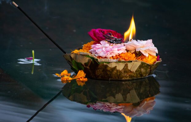 મંદિરમાંથી મળેલા ફૂલોને પવિત્ર જળમાં વિસર્જન કરો