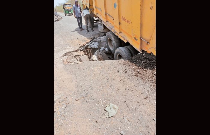 સાયલા તાલુકાના 3,000થી વધુ વસતી ધરાવતા કાશીપરા ગામને રસ્તા તથા એસટી બસ સુવિધાની મુશ્કેલી જોવા મળે છે. આ બાબતે સરપંચ અને ગ્રામજનો દ્વારા અનેક રજૂઆતો કરવામાં આવી છે પરંતુ કાશીપરા ગામના બિસમાર રસ્તાનું નવિનીકરણ કરવાનો કોઈ ઉકેલ આવતો નથી. સાયલાથી 3 કિમી દૂર કાશીપરા ગામના બિસમાર રસ્તાને કારણે વિદ્યાર્થીનીઓ પગપાળા અને સાઈકલ દ્વારા સાયલા અભ્યાસ માટે આવી રહ્યા છે. જ્યારે ગામના દર્દી અને સગર્ભા બહેનોને આ રસ્તેથી પસાર થતાં જીવનું જોખમ વધતું જોવા મળે છે. ત્યારેે બુધવારે સાંજે બિસમાર બનેલા કાશીપરા અને સોમાસર વચ્ચે આવેલા જર્જરિત નાળા ઉપરથી ડમ્પર પસાર થઈ રહ્યુ હતું. દરમિયાન અચાનક નાળું બેસી જતાં ડમ્પરનું વ્હીલ ફસાઈ ગયું હતું. આથી સિંગલ પટ્ટી રસ્તો બંધ થતાં અન્ય વાહન ચાલકોમાં પરેશાની જોવા મળી હતી. આ બાબતની જાણ થતા ગ્રામજનોને યુવાનોએ ભારે જહેમત ઊઠાવીને રસ્તા વચ્ચેથી ડમ્પર દૂર કરવાની કાર્યવાહી હાથ ધરવામાં આવી હતી.