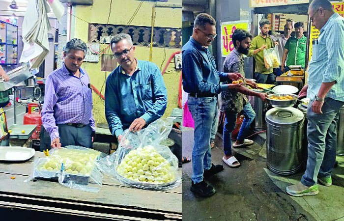 આજરોજ આરોગ્ય વિભાગની ટીમે અમૃતમ નાસ્તા ગૃહ, વલ્લભ ટ્રેડર્સ, ઓમ ડેરી ફાર્મ, દ્વારકાધીશ હોટલ, જરિયા ડાઈનીંગ હોલ, સાંઈ કૃપા ડાઈનીંગ હોલ, જય માતાજી ડાઈનીંગ હોલ, રોનક મદ્રાસ કાફે, રામદૂત રેસ્ટોરન્ટ, રોનક પાન એન્ડ કોલ્ડ્રિંક્સ, શ્રી દેવ ચામુંડામા પાણીપુરી, જય જલારામ નાસ્તા ગૃહ, ગદાદા રેસ્ટોરન્ટ, આત્મીય કોલ્ડ્રિંક્સ, મોમાઈ હોટલ, મહાદેવ ગાંઠીયા, જય ખોડીયાર મઠો, પટેલ પાણીપુરી, માહિ મયુર ભજીયા અને બીગ ફાસ્ટ ફૂડ સહિતના તમામને લાયસન્સ મેળવવા બાબતે સૂચના આપવામાં આવી હતી તથા રામક્રિષ્ના સ્ટોર, ડીલાઈટ બેકરી, મા ભગવતી ફરસાણ, ક્રિષ્ના અમૂલ પાર્લર, ક્રિષ્ના પ્રોવિઝન સ્ટોર, ગાત્રાળ કોલ્ડ્રિંક્સ, ગાત્રાળ જનરલ સ્ટોર, ગાત્રાળ ફ્લોર મિલ, ખોડલધામ ફાસ્ટફૂડ, સાયોના પ્રોવિઝન સ્ટોર, નીલકંઠ ડેરી ફાર્મ, નાગદાદા હોટેલ, પ્રમુખરાજ ડેરી ફાર્મ, અમી દુગ્ધાલય, બાપા સીતારામ ઘૂઘરા, જી.જી.એમ. સ્વીટ એન્ડ નમકીન, પુષ્ટિ પ્રોવિઝન સ્ટોર, ધારેશ્ર્વર ડેરી, બાલાજી અમૂલ પાર્લર, સીતારામ સુરતી ખમણ, ઘનશ્યામ ડેરી ફાર્મની ચકાસણી કરવામાં આવી હતી, સાથે જ ફૂડ સેફ્ટી સ્ટાન્ડર્ડ એક્ટ 2006 હેઠળ કુલ 5 નમૂના લેવામાં આવ્યા હતા.