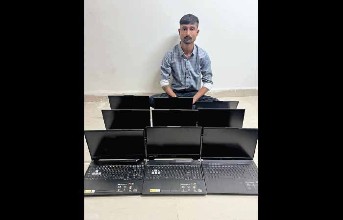 દરમિયાન પોલીસ કમિશ્નર બ્રજેશકુમાર ઝા, એડી. સીપી મહેન્દ્ર બગડીયા, ડિસીપી રાકેશ દેસાઇ દ્વારા ચોરીના ગુન્હાઓનો ભેદ ઉકેલવા આપેલી સૂચના અન્વયે એલસીબી ઝોન-2ના પીએસઆઇ આર.એચ.ઝાલા અને ટીમના એએસઆઇ જે.વી.ગોહેલ, રાજેશ મિયાત્રા, જે.વી.ગોહેલ, હેડ કોન્સ્ટેબલ ધર્મરાજસિંહ ઝાલા, શક્તિસિંહ ગોહિલ, હેમેન્દ્ર વાધિયા, ધર્મેન્દ્રસિંહ ઝાલા, અંકિત નિમાવત, અનિલ ઝીલરીયા અને કોન્સ્ટેબલ કુલદીપસિંહ રાણા, અમીન ભૂલર અને પ્રશાંત ગજેરાને બાતમી મળી હતી કે એક શખ્સ શાસ્ત્રી મેદાન સામે લેપટોપ વેચવાની પેરવી કરી રહ્યો છે આ બાતમી આધારે ટીમે તુરંત દોડી જઈ આરોપી સ્મીત દર્શિત વ્યાસને પકડી પાડી એક લેપટોપ કબ્જે કર્યું હતું તેની પૂછતાછ કરતા તેણે અન્ય લેપટોપ લોધાવાડમાં આવેલ લેપટોપ રીપેરીંગનું કામ કરતાં જયેશ ચાવડા નામના વેપારીને 30 હજારમાં વેચી દીધાની કબૂલાત આપતાં પોલીસે વેપારી પાસેથી અન્ય આઠ લેપટોપ સહીત 7.16 લાખનો મુદ્દામાલ જપ્ત કર્યો હતો આરોપી ટ્રેડિંગમાં રૂપીયા હારી ગયો હોવાથી દેણું ઉતારવા માટે ચોરી કર્યાની કબૂલાત આપી હતી આરોપીએ અગાઉ અમદાવાદના વસ્ત્રાપુર રોડ પર માનસી સર્કલ પાસે આવેલ હેલ્યો સેન્ટ્રીકસ કંપનીમાંથી પણ ચાર લેપટોપ ચોર્યા હોવાની પણ કબૂલાત આપી હતી.