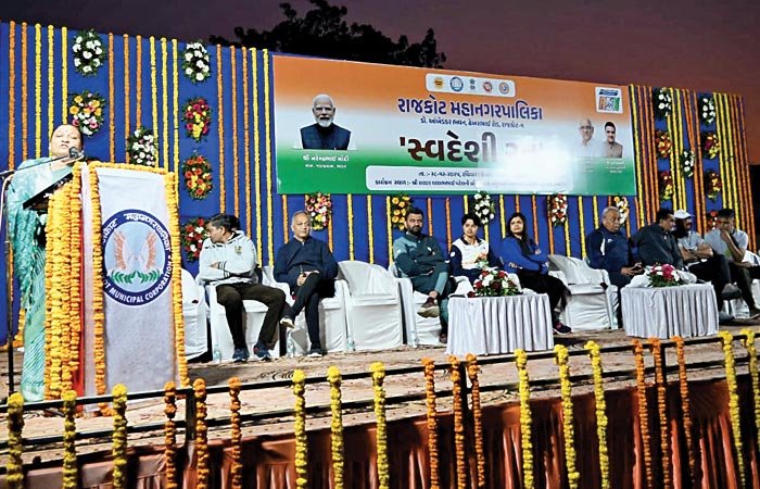 રાજકોટ મહાનગરપાલિકા દ્વારા રવિવારે સવારે 6:30 કલાકે રેસકોર્ષના સરદાર વલ્લભભાઈ પટેલની પ્રતિમા પાસે સ્વદેશી રનનું આયોજન કરવામાં આવ્યું હતું. આ દોડમાં નાના બાળકોથી લઈને વડીલો સુધીના શહેરીજનોએ ઉત્સાહભેર ભાગ લઈ કાર્યક્રમને ભવ્ય બનાવ્યો હતો. સ્થાનિક ઉત્પાદનો, સેવાઓ, કલાકૃતિઓ અને સ્વદેશી ઉદ્યોગોને પ્રોત્સાહન આપવાના ઉદ્દેશ્ર્યથી ‘લોકલ ફોર વોકલ’, ‘મેક ઇન ઇન્ડિયા’ અને ‘વન ડિસ્ટ્રિક્ટ વન પ્રોડક્ટ’ જેવી પહેલને આગળ વધારવા માટે આ સ્વદેશી રનનું આયોજન કરવામાં આવ્યું હતું. આ સ્વદેશી રનમાં શિકાગોથી આવેલા નાગરિકો તેમજ વિશ્ર્વવિખ્યાત એથ્લેટ અને માઉન્ટ એવરેસ્ટ વિજેતા નીશાકુમારી પણ જોડાયા હતા. અરૂૂણાચલ પ્રદેશથી મુન્દ્રા-કચ્છ સુધીની સાઈકલ યાત્રા પર નીકળેલા નીશાકુમારીએ સ્વદેશી રન દ્વારા સ્વદેશી સંદેશને વધુ મજબૂત બનાવ્યો હતો.