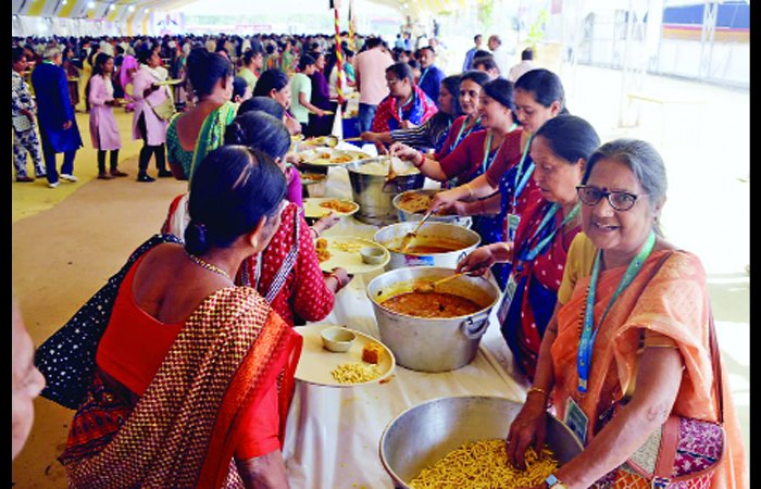 ભોજન પીરસવા માટે ખોડલધામ મહિલા સમિતિનાં 100 કાર્યકર્તા બહેનો ઉપરાંત પંચનાથ ટ્રસ્ટના 300 સ્વયંસેવકો નિ:સ્વાર્થ સેવા આપી રહ્યા છે
