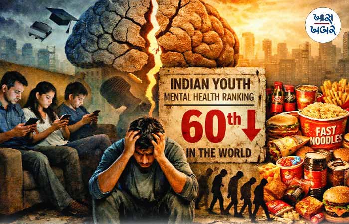 ભારતમાં 18 થી 34 વર્ષના યુવાનો બહેતર માનસિક સ્વાસ્થ્યના મામલામાં દુનિયાના 84 દેશોમાં 60મા ક્રમે હોવાનો ચિંતાજનક ખુલાસો ગ્લોબલ માઇન્ડ હેલ્થ-2025ના રિપોર્ટમાં થયો છે. આ રિપોર્ટ અનુસાર ભારતના યુવાનોનો માઇન્ડ હેલ્થ ક્વોશેન્ટ અર્થાત ખઇંચ સ્કોર માત્ર 33 છે, જે વડીલોની તુલનામાં ઘણો ઓછો છે. આશ્ચર્યજનક બાબત એ છે કે 55 વર્ષથી ઉપરના ભારતીયોનો સ્કોર 96 છે અને તેઓ વૈશ્વિક રેન્કિંગમાં 49મા ક્રમે છે. આ રિપોર્ટ ચેમ્પિયન લેબ્સના ગ્લોબલ માઇન્ડ પ્રોજેક્ટ અંતર્ગત 10 લાખથી વધુ લોકોના ડેટાના આધારે તૈયાર કરવામાં આવ્યો છે. સ્માર્ટફોનનો નાનપણથી ઉપયોગ, અલ્ટ્રા-પ્રોસેસ્ડ પેકેજ્ડ ફૂડનું વધતું ચલણ અને પરિવારથી વધતું અંતર યુવા પેઢીની માનસિક તબિયત બગાડવા પાછળના મુખ્ય કારણો તરીકે સામે આવ્યા છે. અલ્ટ્રા-પ્રોસેસ્ડ ફૂડના કારણે શારીરિક જ નહીં પણ માનસિક બીમારીઓનો ખતરો પણ વધી રહ્યો છે. સર્વેક્ષણ મુજબ 44 ટકા યુવાનો અઠવાડિયાના મોટાભાગના દિવસોમાં આવું પેકેજ્ડ ફૂડ ખાય છે, જ્યારે વડીલોમાં આ પ્રમાણ માત્ર 11 ટકા છે. છેલ્લા 15 વર્ષમાં ભારત અલ્ટ્રા-પ્રોસેસ્ડ ફૂડનું વિશ્વનું સૌથી ઝડપથી વધતું બજાર બની ગયું છે, જે યુવાનોમાં સ્થૂળતા અને ડાયાબિટીસની સાથે માનસિક તાણ પણ વધારી રહ્યું છે. જોકે પારિવારિક જોડાણ અને આધ્યાત્મિકતા હજુ પણ ભારતીય યુવાનો માટે સુરક્ષા કવચ સમાન છે, પરંતુ ઇન્ટરનેટના પ્રભાવ હેઠળ હવે પરિવાર સાથેના આત્મીય સંબંધોમાં પણ ઘટાડો થઈ રહ્યો છે. એમએચક્યુ સ્કોર જે માણસની ભાવનાત્મક અને સામાજિક ક્ષમતાઓને માપે છે, તેમાં યુવાનોનું પાછળ પડવું એ દેશના ભવિષ્ય માટે લાલબત્તી સમાન છે.