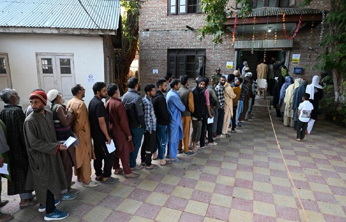 જમ્મુ અને કાશ્મીર વિધાનસભા ચૂંટણીના ત્રીજા અને અંતિમ તબક્કામાં આજે (પહેલી ઓક્ટોબર) મતદાન કરવા માટે લોકો જમ્મુમાં મતદાન કેન્દ્રની બહાર કતારમાં ઊભા જોવા મળે છે. કેન્દ્રશાસિત પ્રદેશના 7 જિલ્લાઓમાં 40 મતદાર ક્ષેત્રોમાં મતદારો તેમના મતાધિકારનો ઉપયોગ કરી રહ્યા છે.