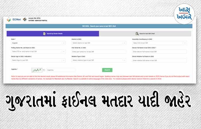 ભારતના ચૂંટણી પંચની સૂચના અનુસાર ગુજરાતમાં હાથ ધરવામાં આવેલી મતદાર યાદીની ખાસ સઘન સુધારણા ઝુંબેશ (SIR) પૂર્ણ થઈ છે. ગત 27 ઓક્ટોબર 2025થી શરૂ થયેલી આ પ્રક્રિયાના અંતે આજે (17 ફેબ્રુઆરી 2026) રાજ્યની આખરી મતદાર યાદી સત્તાવાર રીતે પ્રસિદ્ધ કરવામાં આવી છે. મુખ્ય નિર્વાચન અધિકારી હારીત શુક્લાએ આ પ્રસંગે જણાવ્યું હતું કે, આ ઝુંબેશને સફળ બનાવવા માટે રાજ્યભરમાં મિશન મોડ પર કામગીરી કરવામાં આવી હતી.