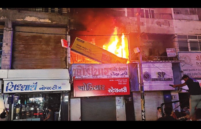 12 હજાર લિટર પાણીનો મારો ચલાવી આગ પર કાબુ મેળવાયો,સદનસીબે કોઈ જાનહાનિ નહીં