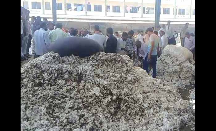 હળવદ માર્કેટિંગ યાર્ડ ખાતે આજે સવારના 10:30 વાગ્યાની આસપાસ હરાજી ચાલી રહી હતી ત્યારે મહારાણા પ્રતાપ નામના શેડમાં કપાસના ઢગલામાં અગમ્ય કારણોસર જોતજોતામાં આગ લાગી ગઈ હતી. કપાસના પાંચથી સાત ઢગલામાં આગ લાગતાં માર્કેટિંગ યાર્ડમાં અફરાતફરી મચી ગઈ હતી.