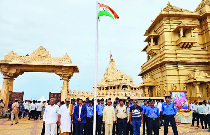 સોમનાથ ટ્રસ્ટ, સુરક્ષા કર્મીઓ અને શ્રદ્ધાળુઓ ‘જય સોમનાથ, ભારત માતાકી જય ના નાદ’ સાથે ઉજવણીમાં જોડાયા