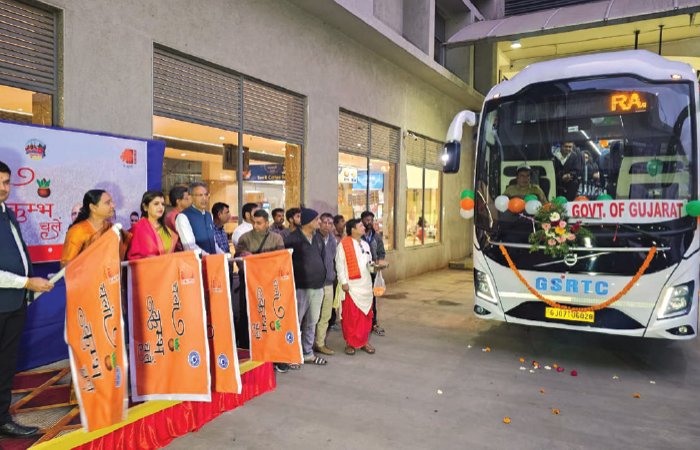 રાજકોટ-પ્રયાગરાજ-રાજકોટની મુસાફરી માટે કુલ 6 બસ ફાળવવામાં આવી છે. રાજકોટથી દરરોજ એક બસ સવારે 5 કલાકે ઉપડશે અને બીજે દિવસે સાંજે 7 કલાકે પ્રયાગરાજ ખાતે પહોંચશે. એ પછીના દિવસે બપોરે 1 કલાકે બસ પ્રયાગરાજથી નીકળશે અને બીજે દિવસે રાત્રે 2 કલાકે બસ રાજકોટ પહોંચશે. પેકેજ બસના મુસાફરો માટે પ્રથમ અને ત્રીજી રાત્રે રહેવાની વ્યવસ્થા બારણ (મધ્યપ્રદેશ બોર્ડર) મુકામે કરવામાં આવી છે. યાત્રિકોએ પ્રયાગરાજ મુકામે રહેવાની વ્યવસ્થા પોતાની રીતે કરવાની રહેશે. બસનું વ્યક્તિદીઠ પેકેજ ભાડું રૂ. 8,800 છે. આ બસનું ઓનલાઈન બુકિંગ એસ.ટી. નિગમની વેબસાઈટ ૂૂૂ.લતિભિં.શક્ષ પરથી કરી શકાશે. રાજકોટથી પ્રયાગરાજ જતી એસટી બસને મેયર અને ધારાસભ્યો દ્વારા લીલીઝંડી આપવામાં આવી હતી. જેમાં 8 વર્ષના બાળકથી લઈને 72 વર્ષના વૃદ્ધ આજે પ્રથમ બસમાં જ મહાકુંભમાં આસ્થાની ડૂબકી લગાવવા માટે રવાના થયા હતા. જેમાં નાના બાળક અને પતિ સાથે જતા સ્કૂલ ટીચરે સરકારી એસટી બસની સુવિધાને વખાણી તો યુવાવયે જ ચારધામની યાત્રા અને મહાકુંભમાં જઈ આવવું જોઈએ, તેવી વાત કરી હતી. તેમના ધોરણ 3માં ભણતા પુત્રના ચહેરા પર ઉત્સાહ જોવા મળી રહ્યો હતો. જ્યારે પોતાની ત્રણ પેઢી એટલે કે, નાની, દીકરી અને 72 વર્ષના માતાને મહાકુંભમાં લઈ જતા ઙૠટઈક જુનિયર ક્લાર્કએ સનાતન ધર્મના પ્રચાર અને લોકોની આસ્થા મજબૂત કરતા આ મહાકુંભમાં જવા માટે તમામ લોકોને હાકલ કરી હતી.