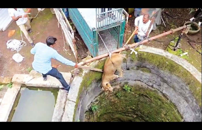 સિંહણ કુવામાં પડી ગયાની જાણ વાડી માલિકે વનવિભાગને કરતા ગીર પશ્ચિમ વિભાગના ડી.સી.એફ.તોમરે તાલાલા રેન્જ ના આર.એફ.ઓ.ધવલભાઈ વઘાસિયા,વનપાલ પ્રવિણભાઈ વાળા,ફોરેસ્ટ ગાર્ડ મનીષભાઈ રવિયા,ટ્રેકર ટીમને તુરંત બનાવનાં સ્થળે રવાના કરી હતી.વનવિભાગના સ્ટાફે કુવા ઉપર માંચડો ગોઠવી કુવામાંથી સિંહણને સલામત રીતે બહાર કાઢી હતી.કુવામાં પડી ગયેલ સિંહણ ની ઉંમર અંદાજે પ વર્ષની છે.કુવામાંથી હેમખેમ બહાર લાવેલ સિંહણ ને સાસણ ગીરના વેટરનરી ડોક્ટરો એ પ્રાથમિક સારવાર આપી જંગલ વિસ્તારમાં મુક્ત કરી હતી..ગણતરીના સમયમાં સિંહણને હેમખેમ બહાર કાઢવામાં આવતા વન વિભાગની કામગીરીને વન્યપ્રાણી તથા પર્યાવરણ પ્રેમીઓએ બિરદાવી હતી.