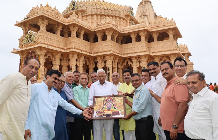 શ્રાવણ માસના પવિત્ર પ્રથમ સોમવારે, ગુજરાતના પૂર્વ રાજ્યપાલ વજુભાઈ વાળા અને રાજકોટ શહેરના અનેક જાણીતા અગ્રણીઓએ દેવાધિદેવ સોમનાથ મહાદેવના દર્શન કરી ધન્યતા અનુભવી હતી. આ પવિત્ર દિવસે વજુભાઈ વાળા અને તેમની સાથે આવેલા અગ્રણીઓએ સોમનાથ મહાદેવ મંદિરમાં વિધિવત પૂજા-અર્ચના કરી, ભગવાન ભોળાનાથના આશીર્વાદ પ્રાપ્ત કર્યા હતા. આ અવસરે, સોમનાથ મંદિરના મેનેજર અને સમગ્ર સ્ટાફ દ્વારા શ્રી વજુભાઈ વાળાનું ઉષ્માભર્યું સન્માન કરવામાં આવ્યું હતું. વજુભાઈ વાળાએ સોમનાથ મહાદેવના દર્શન કરીને પ્રવર્તમાન રાજકીય અને સામાજિક સ્થિતિ અંગે પણ ચિંતન કર્યું હતું, અને સૌરાષ્ટ્રના આ પાવન તીર્થધામની મુલાકાતને યાદગાર ગણાવી હતી. શ્રાવણ માસના પ્રારંભે જ સોમનાથ મહાદેવના દર્શન કરવાનો લહાવો મળવાથી તેઓ સંતોષ વ્યક્ત કર્યો હતો.