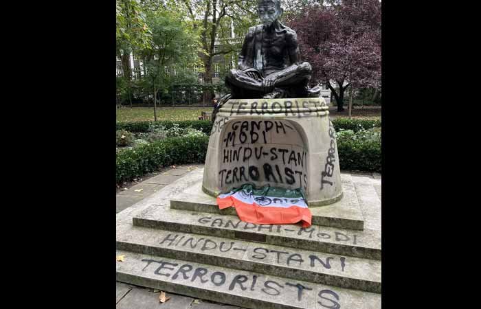 લંડનના ટેવિસ્ટોક સ્ક્વેરમાં સોમવારે મહાત્મા ગાંધીની પ્રતિમાને અપમાનજનક સૂત્રોચ્ચાર લખવાની ઘટના સામે આવી હતી. તોપોની તત્વોએ પ્રતિમા પર ‘ગાંધી,’ ‘મોદી’ અને ‘હિન્દુસ્તાન આતંકવાદી’ જેવા સૂત્રોચ્ચાર લખ્યા હતા.
